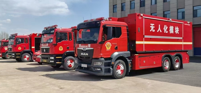 無人機與地面指揮中心實時信息聯(lián)動,配套專用消防車作為貯存和供給平臺,適用于高層建筑、化工火災(zāi)等場景。